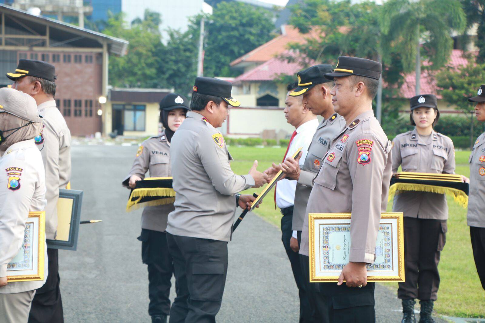 Adapun nama-nama anggota yang berprestasi dan menerima reward atau penghargaan dari Kapolda Jatim tersebut adalah