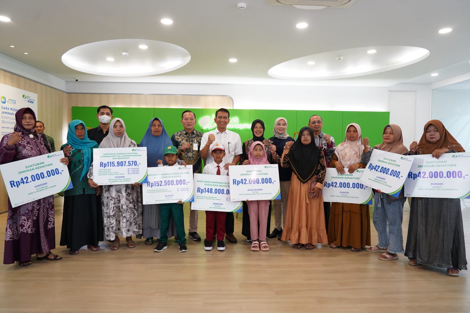 Hadir dalam agenda ini, sembilan orang perwakilan ahli waris penerima santunan dari pemerintah Kabupaten Bojonegoro yang terdaftar sebagai Pekerja Rentan, Penerima Insentif Daerah (perangkat desa, marbot, dan satuan perlindungan masyarakat (Satlinmas)), hingga peserta penerima upah. Kerjasama program santunan ini menjadi wujud nyata kolaborasi Pemerintah Kabupaten Bojonegoro dengan BPJS Ketenagakerjaan dalam memberikan perlindungan sosial bagi masyarakat pekerja informal.