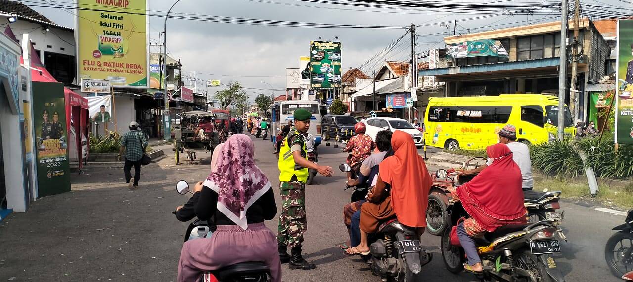 Babinsa jajaran Kodim 0812 Lamongan melaksanakan bantuan Pengamanan di Pos Mudik Lebaran tahun 1444 H/2023 M, dalam rangka pengamanan Hari Raya Idul Fitri 1444 H tahun 2023 di wilayah jajaran Kodim 0812 Lamongan, Senin (24/4/2023). Dok.pendim@2023.