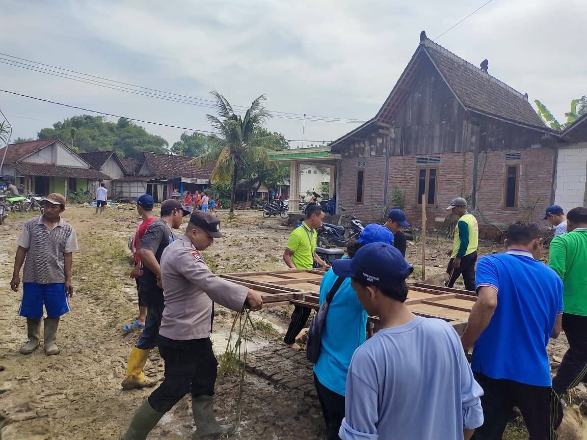 Lanjut Kompol Yusis, untuk kondisi Dusun Kali Klampok Desa Bobol sudah tidak ada genangan air hanya meninggalkan sisa sisa sampah dan material lumpur yang menutupi jalan hingga masuk ke dalam rumah warga.
