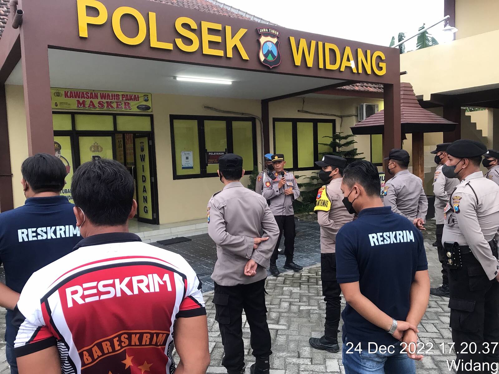 Kapolsek Widang AKP Rukimin, S.H. M.H. pimpin pelaksanaan kegiatan apel siaga pengamanan malam Natal di halaman depan Polsek Widang, Sabtu (24/12/2022) pukul 17.00 Wib.