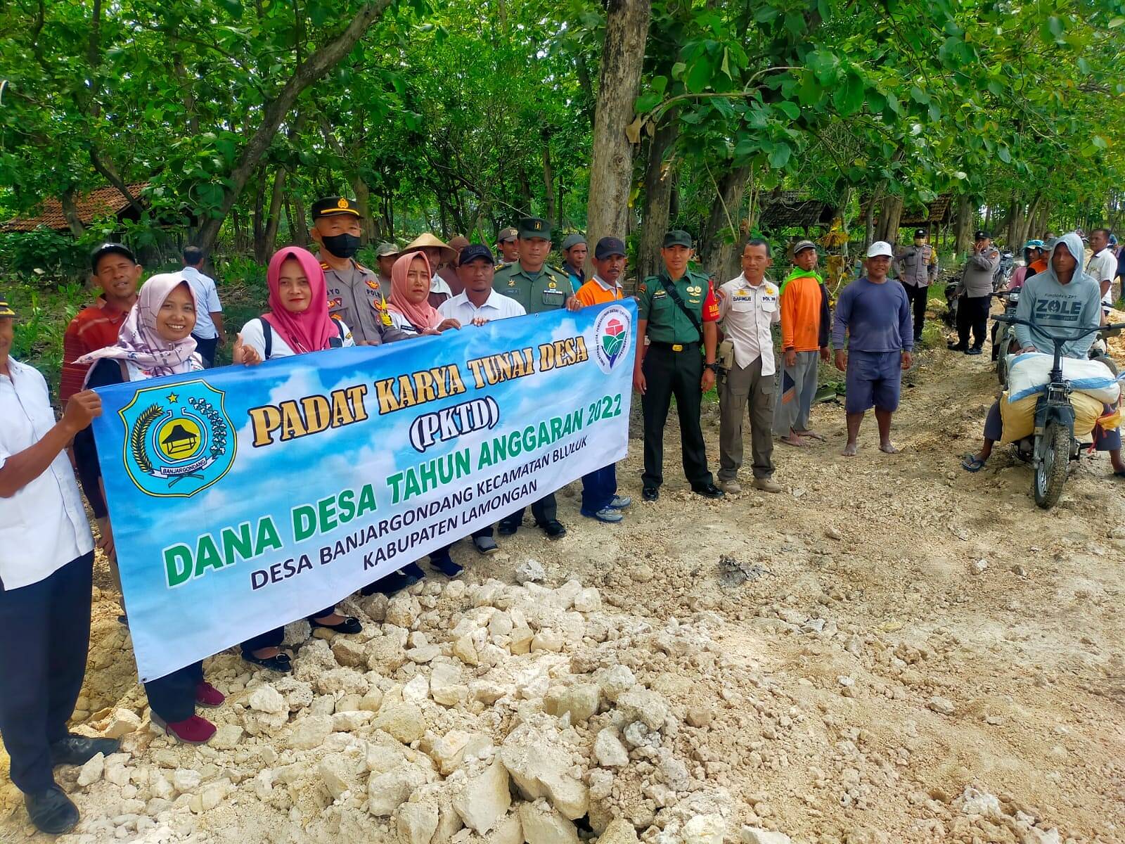 Lamongan, Kabar1News.com – Sebagai aparat yang mengawal program-program pembangunan di desa binaan, Babinsa Koramil 0812/07 Bluluk Serda Didik dan Bhabinkamtibmas hadir dalam kegiatan Padat Karya Tunai Desa (PKTD) Grosok Jalan (Leveling Grosok) di Desa Banjargondang Kecamatan Bluluk Kabupaten Lamongan. Minggu (23/10/2022)