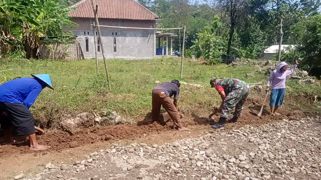 Ngawi, Kabar1News.com – Untuk menjaga hubungan yg baik antara Babinsa dengan warga masarakat ,Sertu Cholib Anggota Koramil 0805/10 Sine Kodim 0805/Ngawi melaksanakan giat Kerja Bakti perbaikan jalan di bertempat di Desa Kuniran Kecamatan Sine, Jumat (14/10/2022)