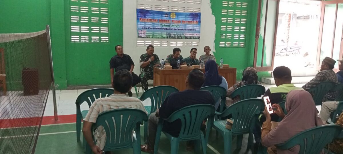 Serka Suzaki Erfan yang mewakili Danramil 0812/23 Solokuro menyampaikan bahwa kegiatan sosialisasi pupuk bersubsidi Tahun 2025 dalam pertemuan ini dapat dijabarkan alokasi pupuk bersubsidi Tahun 2025 dan cara penyalurannya.
