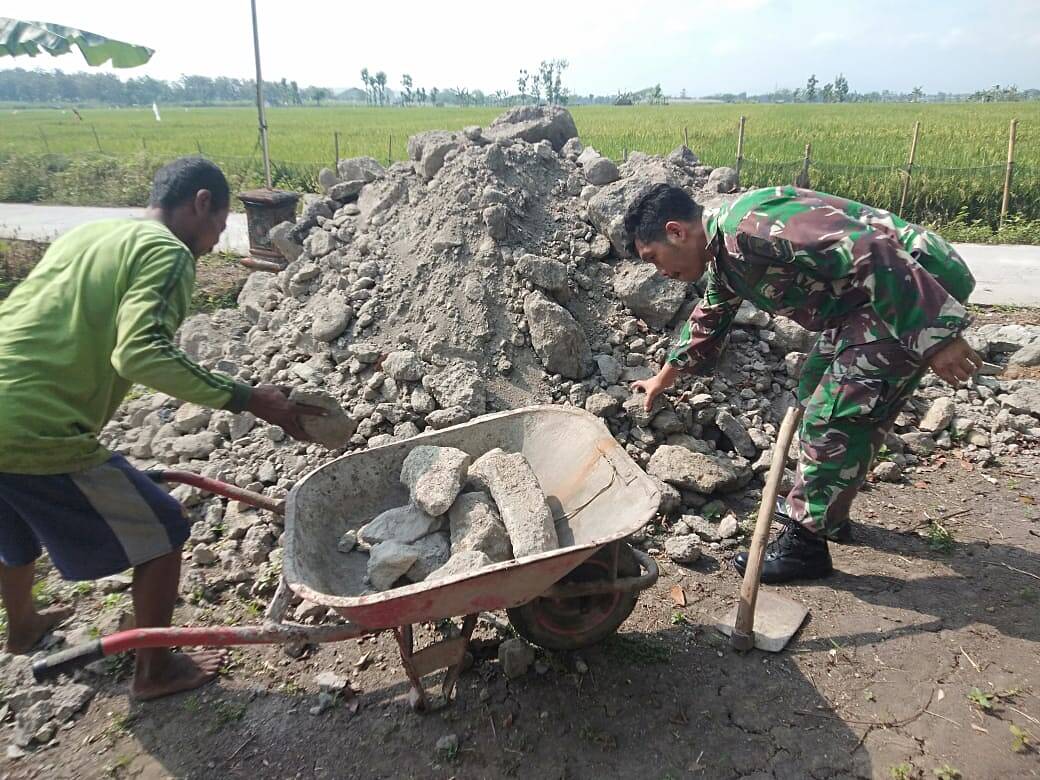 Di lokasi pembereman jalan Indrawan dan warga antusias semangat dalam bekerja. Di lokasi itu, Babinsa Desa Denanyar mengajak ngobrol dan sesekali dengan diselingi humor segar.