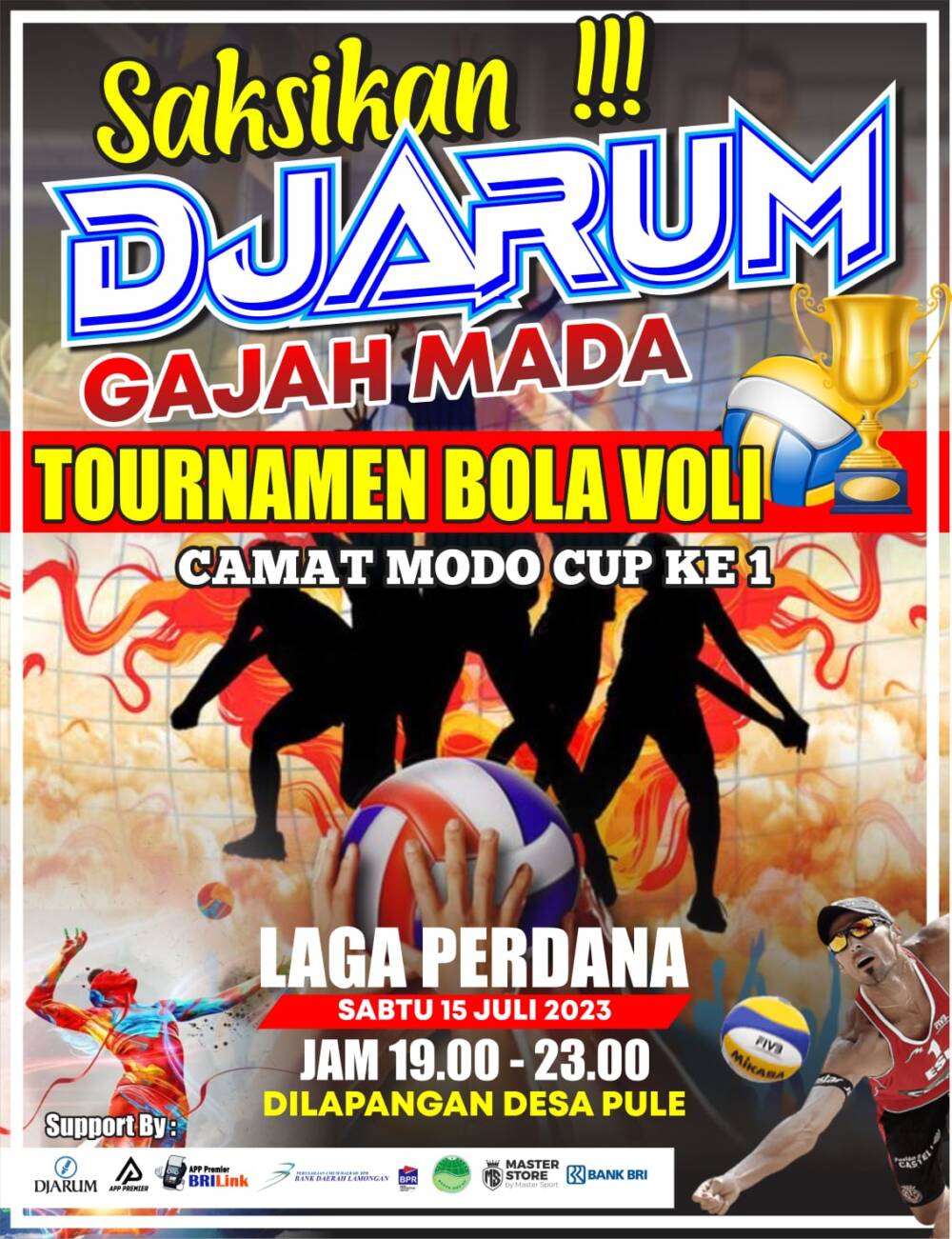 Turnamen Bola Voli Gajahmada Camat Modo Cup I 2023 yang rencana digelar di Lapangan Desa Pule mulai 15 Juli hingga selesai dan diikuti 17 Desa. Laga perdana akan bertanding tim Bola Voli Desa Pule melawan Tim Bola Voli Desa Kedungwaras pada Sabtu (15/7), pukul 19.00 WIB.