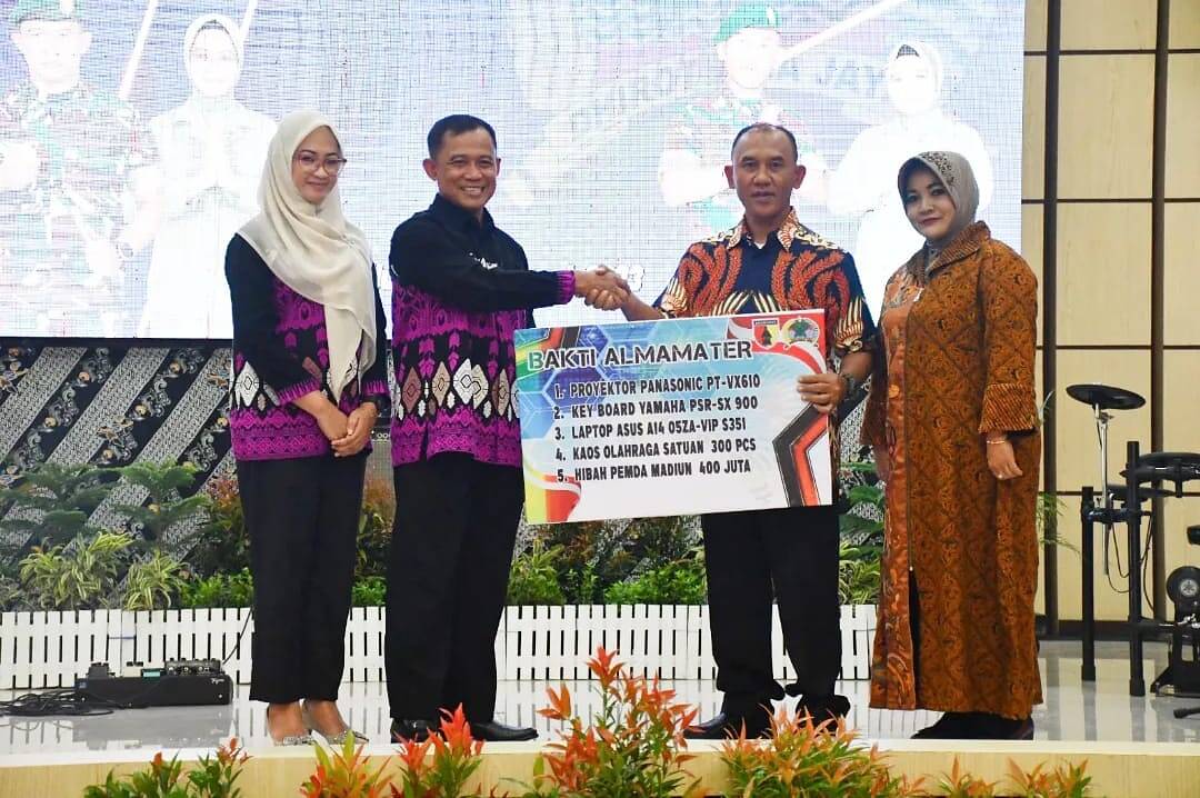 Bakti almamater yang diberikan berupa proyektor Panasonic PT-VX610, keyboard Yamaha PSR-SX 900, laptop Asus A14 05ZA-VIP S351, kaos olahraga satuan 300 Pcs, dan dana hibah dari Pemda Madiun sebesar Rp. 400 Juta.