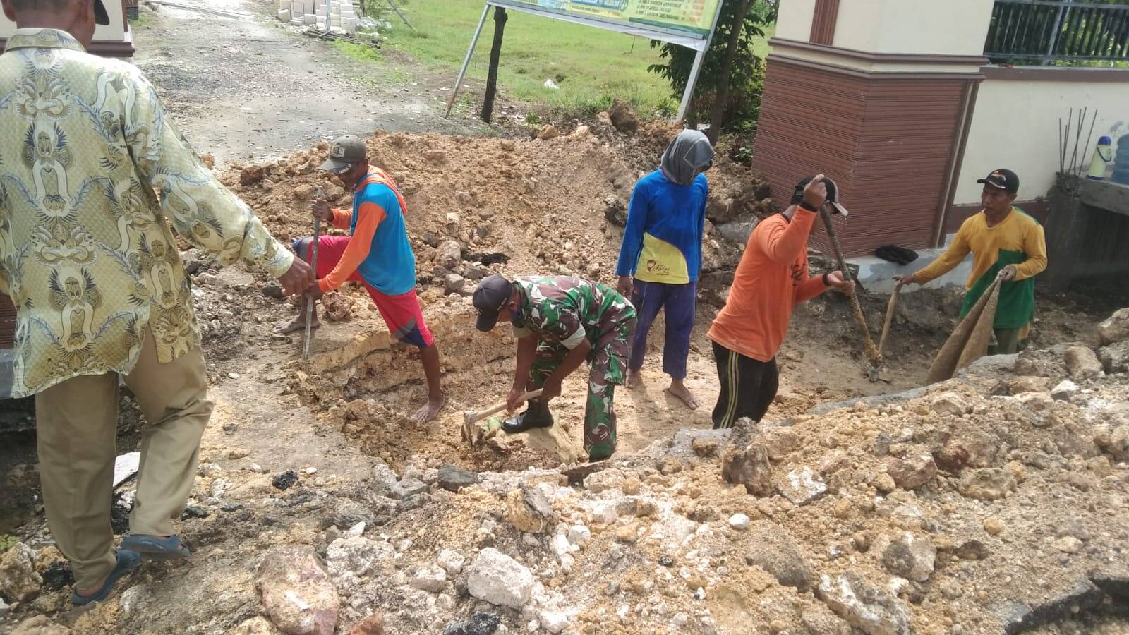 Lamongan, Kabar1news.com -Bakti TNI merupakan tujuan tugas sebagai Babinsa dalam mewujudkan pelaksana Pembinaan Teritorial (Binter) di wilayah untuk mendukung dan membantu pemerintah dalam mengatasi kesulitan rakyat, salah satunya memberikan bantuan tenaga membangun fasilitas umum.
