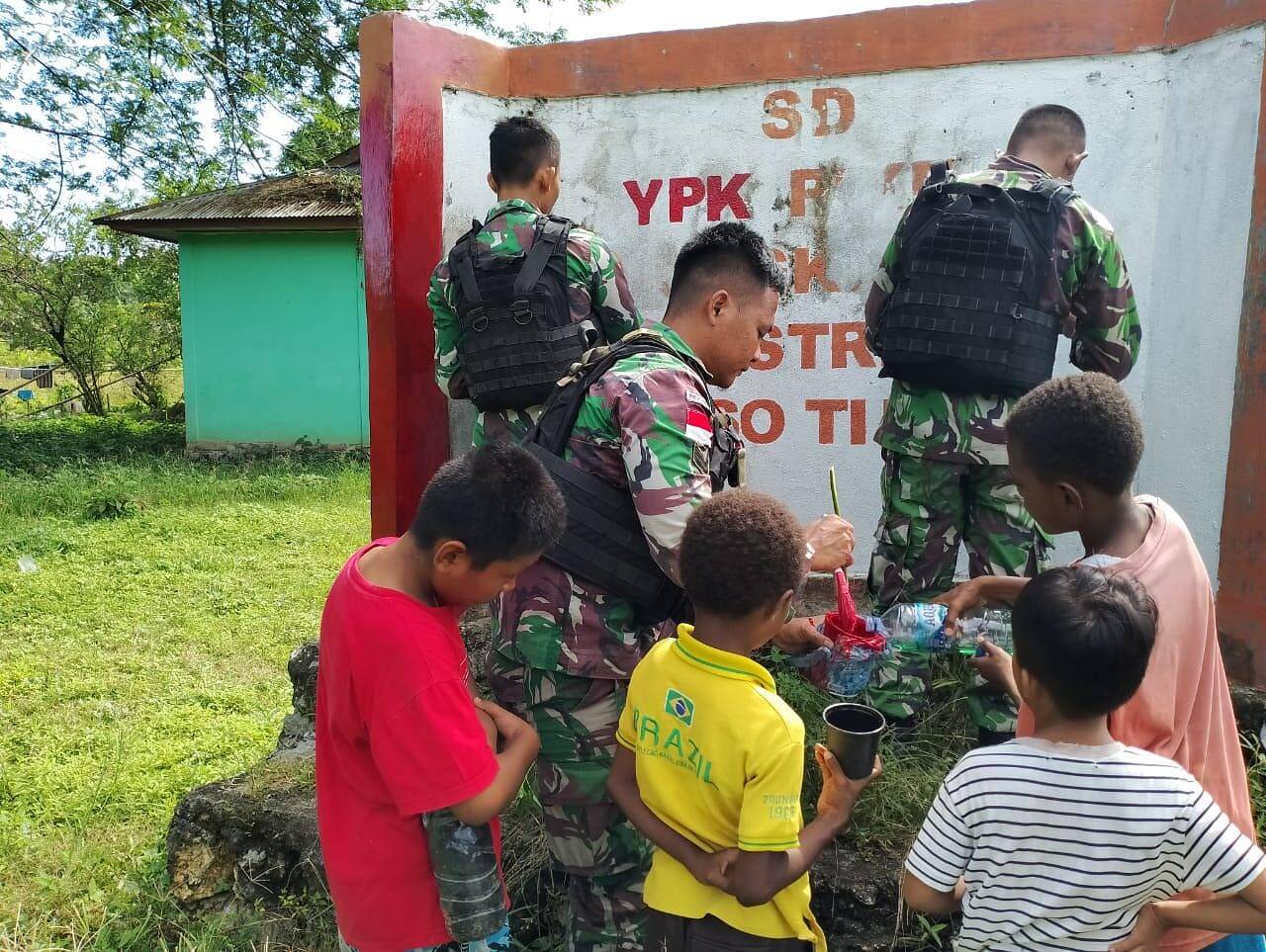 ”Kegiatan ini sebagai kehadiran dan kepedulian TNI untuk membantu meningkatkan mutu dan kemajuan pendidikan di Papua khususnya di daerah perbatasan, salah satu wujud kemanunggalan TNI dengan rakyat guna membangun kebersamaan dan silahturahmi di desa ini,” ungkapnya.