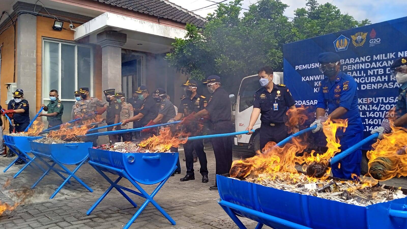 Sebagai salah satu wujud implementasi dari fungsi pengawasan, Kantor Wilayah DJBC Bali, NTB dan NTT berkolaborasi dengan Bea Cukai Ngurah Rai dan Bea Cukai Denpasar pada Kamis, 21 Juli 2022 melaksanakan kegiatan Pemusnahan BMN atas barang hasil penindakan periode Januari s.d. Juni 2022 yang didapat melalui giat operasi pasar terhadap produk Hasil Tembakau (HT), Hasil Pengolahan Tembakau Lainnya (HPTL) dan Minuman Mengandung Etil Alkohol (MMEA) ilegal yang beredar di masyarakat dan juga penindakan terhadap barang bawaan penumpang serta barang kiriman dari luar negeri yang dikategorikan barang larangan dan pembatasan (lartas) yang tidak terselesaikan kewajiban kepabeanannya.