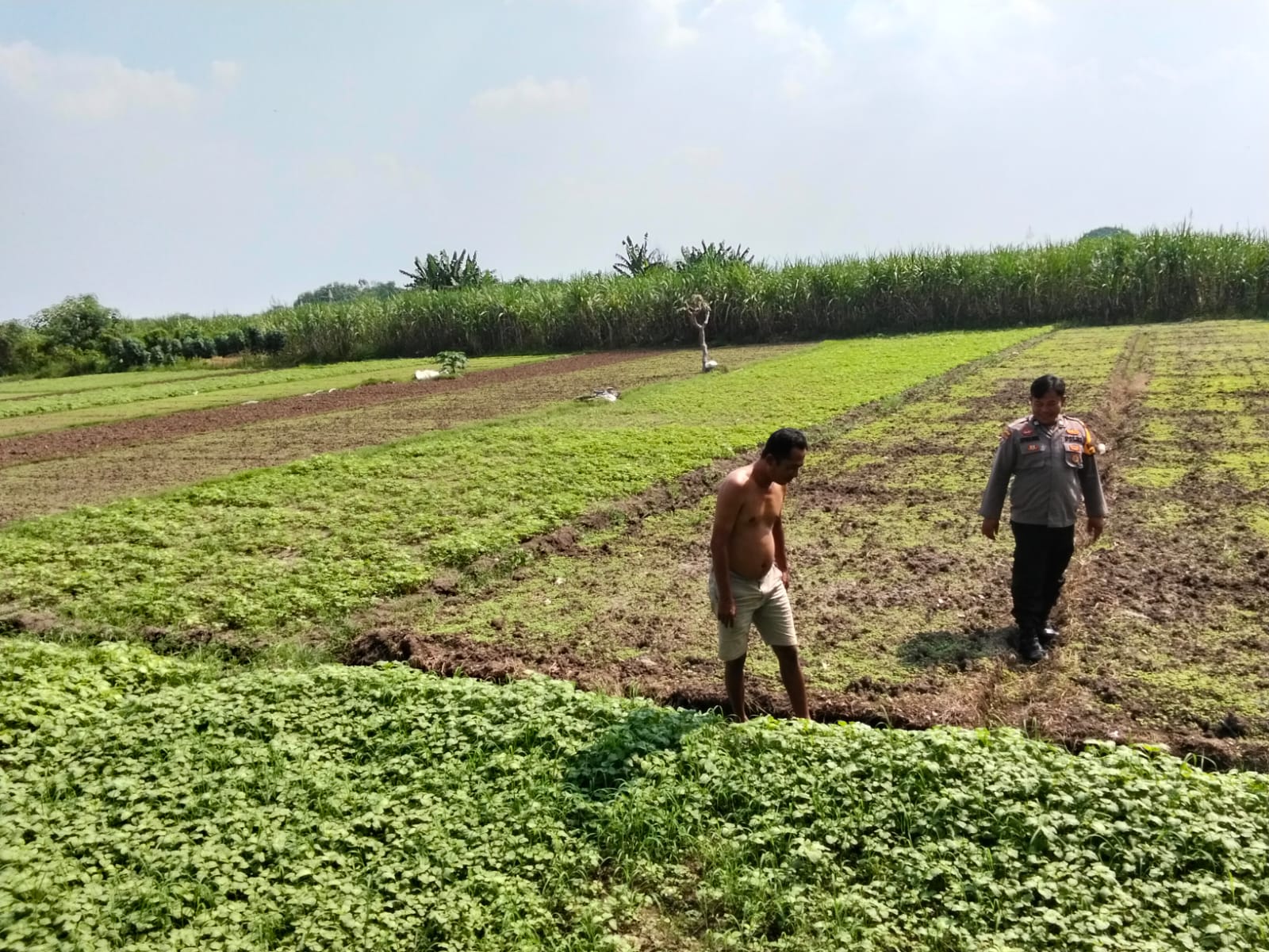 Pada Minggu (1/6/2025), Aiptu Iswandi menyambangi para petani di Desa Jati Alun-alun, Kecamatan Prambon, Kabupaten Sidoarjo. Dalam kegiatan yang berlangsung hangat tersebut, ia berdialog langsung dengan para petani terkait kondisi lahan, tanaman sayur yang dikelola, serta pentingnya menjaga kesuburan tanah.