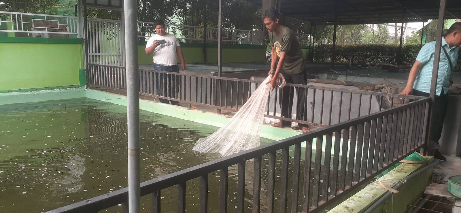 Selanjutnya Fuquh menjelaskan “Kolam ini menggunakan 3 metode, yaitu probiotik dan sinbiotik dan agen Hayati. Percobaan kita di kolam ini sangat memuaskan.”
