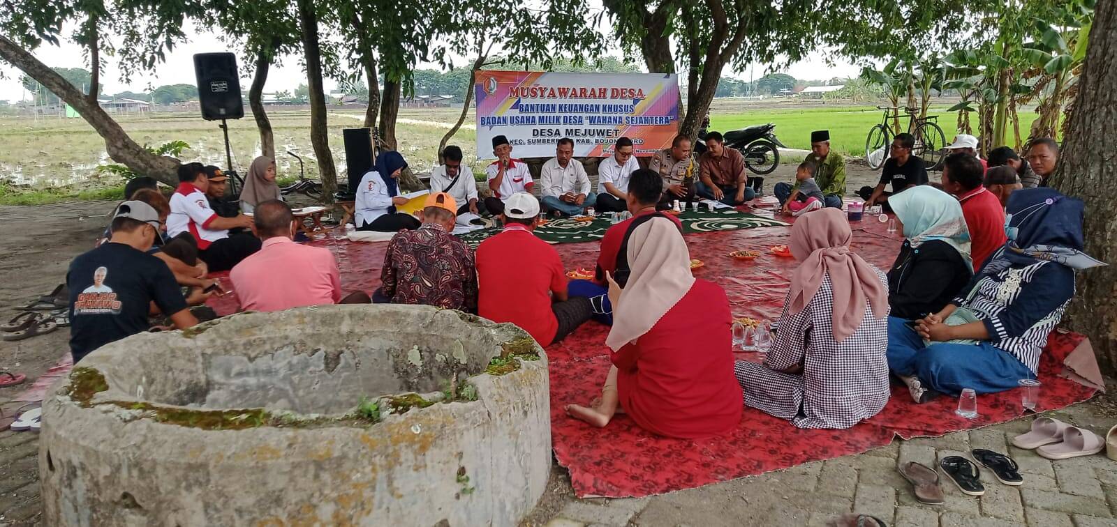 Musdes yang dihadiri Muhadi Kepala Desa Mejuwet, Waris Ketua BPD Mejuwet, Irfansyah Pendamping BUMDesa Kecamatan Sumberrejo Kabupaten Bojonegoro, Ketua Karang Taruna, RT/RW, LPMD, Tokoh Agama dan Masyarakat ini membahas Bantuan Keuangan Khusus (BKK) dari Pemkab Bojonegoro senilai Rp. 100.000.000,- untuk Ketahanan Pangan.