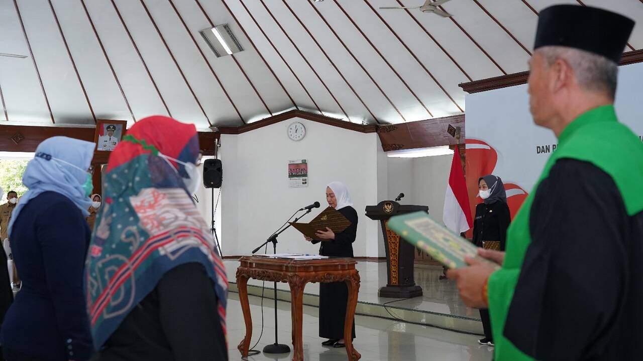 Bojonegoro, Kabar1News.com – Bupati Bojonegoro Anna Mu’awanah melantik dan mengambil sumpah jabatan sebanyak 11 pejabat di lingkup pemkab Bojonegoro. Mereka adalah para pejabat administrator, pengawas, dan fungsional. Pelantikan digelar di Pendopo Malowopati Bojonegoro, (3/10/2022).