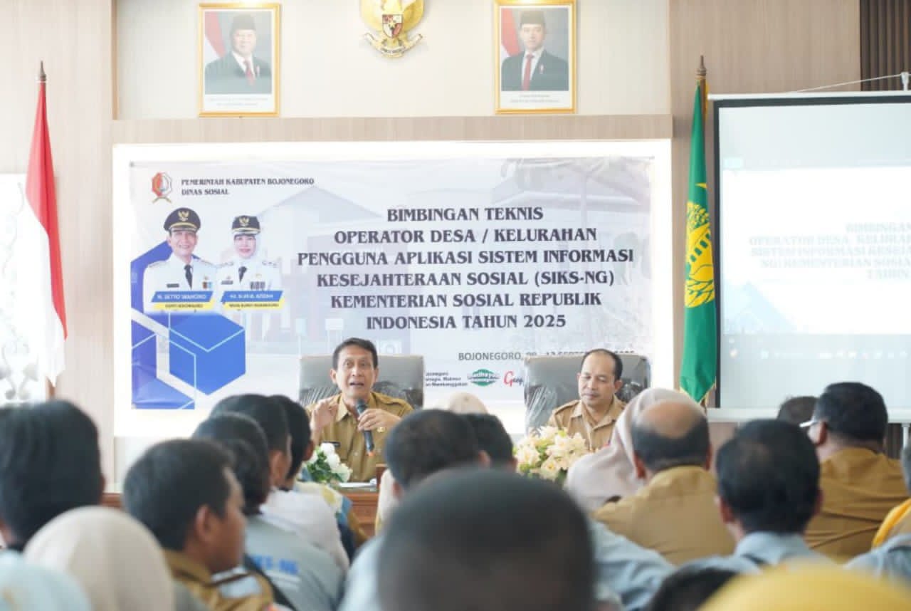 BOJONEGORO, Kabar1News.com – Bupati Bojonegoro Setyo Wahono hadir dan membuka acara Pelaksanaan Bimbingan Teknis Operator Desa atau Kelurahan Pengguna Aplikasi Sistem Informasi Kesejahteraan Sosial Next Generation (SIKS-NG), Senin, (8/9/2025) di Aula Kantor Dinas Sosial.