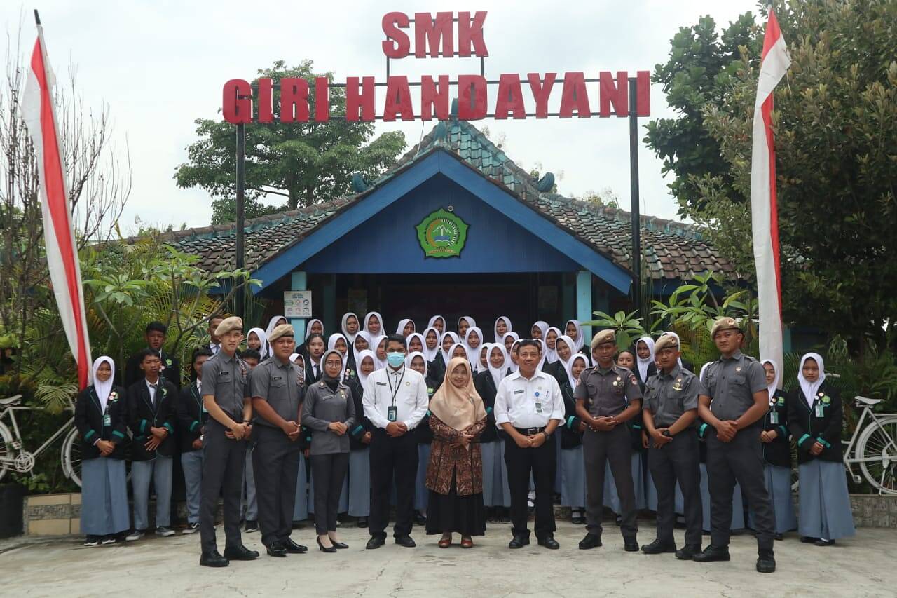 DIY, Kabar1News.com – 58 Kader Muda Bela Negara SMK Giri Handayani di kukuhkan oleh Bupati Gunungkidul, H. Sunaryanta di Pendopo SMK Giri Handayani pada hari Senin (7/11/22). Kader Muda Bela Negara yang dikukuhkan adalah mereka yang telah selesai melaksanakan Pendidikan Kader Bela Negara pada tanggal 15 – 16 Juli 2022 di Wanagama Eco Edu Forest yang diadakan oleh Badan Koordinator Wilayah Forum Kader Bela Negara (FKBN) D.I Yogyakarta. Pengukuhan Kader Muda Bela Negara tersebut dihadiri oleh Komandan KODIM 0730, Kapolres Gunungkidul, Kepala Kesbangpol Gunungkidul, Kepala Balai Pendidikan Menengah Kabupaten Gunungkidul, dan Ketua Yayasan Bumantara Sejahtera selaku pemilik SMK Giri Handayani.