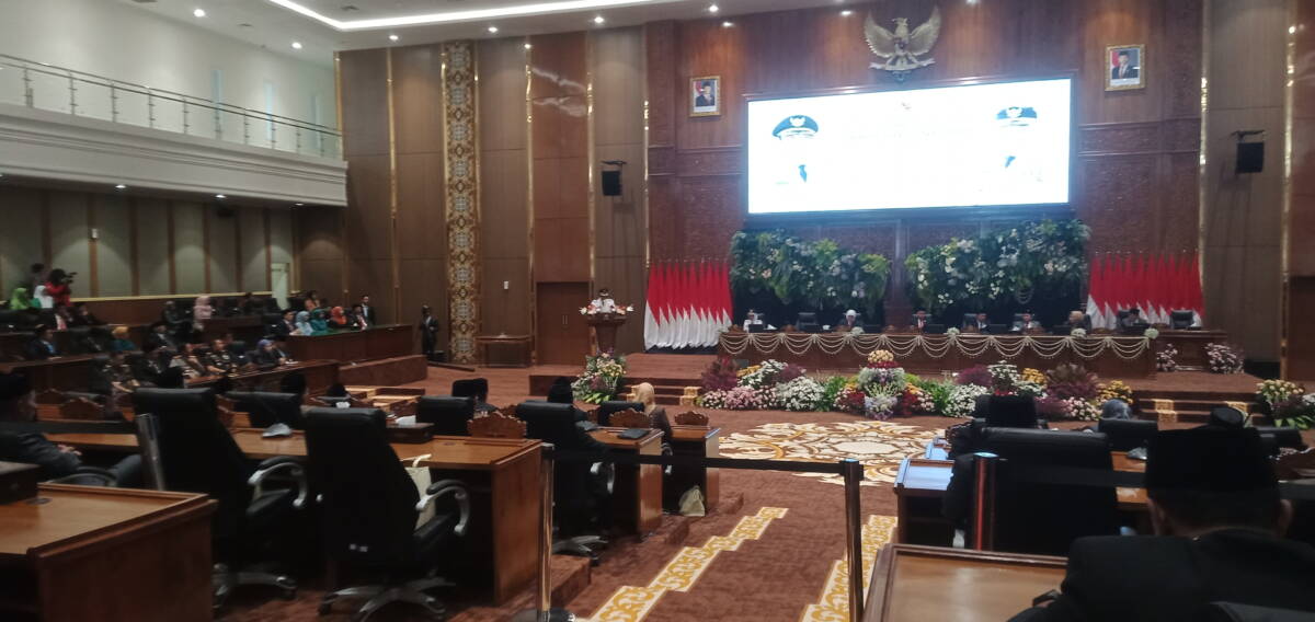 Acara sertijab ditandai dengan penandatanganan serah terima jabatan dan dilanjutkan Rapat Paripurna Istimewa penyampaian sambutan Bupati Bojonegoro periode 2025-2030.
