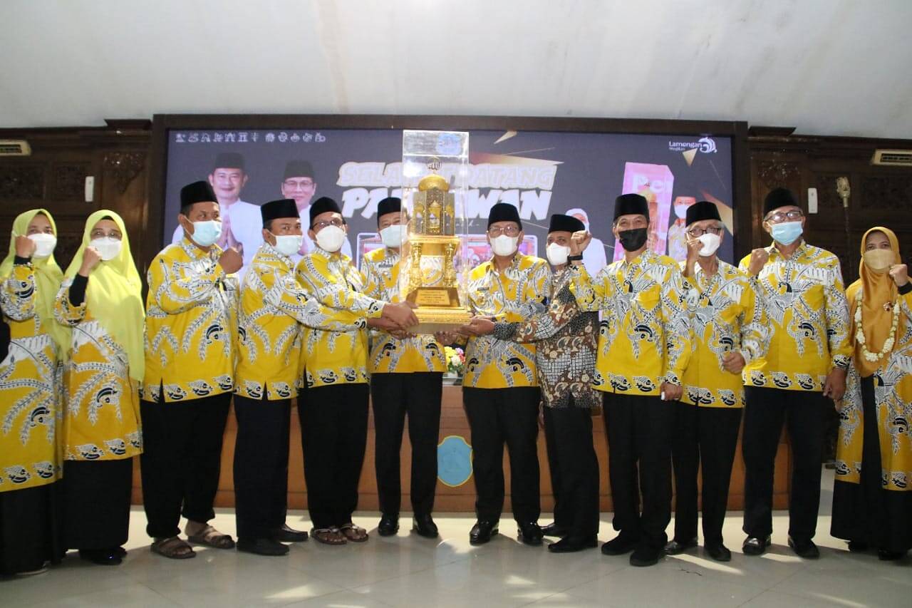 “Ini lah moment yang dinanti-nanti. Moment yang membanggakan atas diraihnya juara umum MTQ Ke-29 yang diselenggarakan di Pamekasan. Meski tidak menjadi tuan rumah tetap jadi juara. Itu artinya kafilah Kabupaten lamongan merupakan kafilah sejati,” ungkap Bupati Yes.
