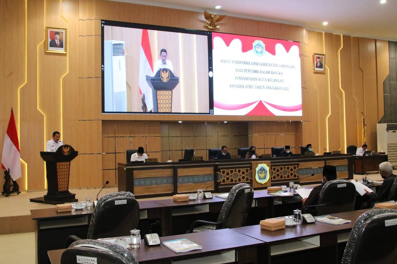 Hal itu diungkapkan Bupati Lamongan Yuhronur Efendi dalam Rapat Paripurna Hari Pertama Pengantar Nota Keuangan atas Rancangan APBD Kabupaten Lamongan Tahun Anggaran 2022 di Ruang Rapat Paripurna DPRD Lamongan, Rabu (3/11).
