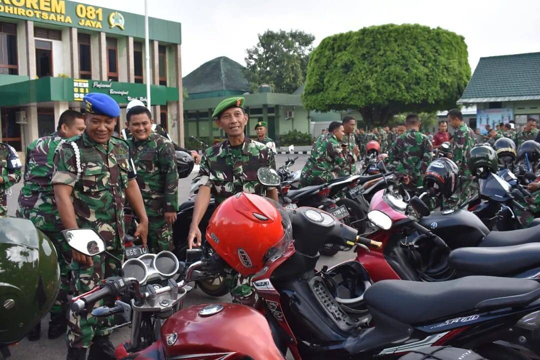 Madiun, kabar1news.com – Ratusan kendaraan bermotor roda 2 milik anggota Korem 081/DSJ pagi ini dilakukan pemeriksaan.