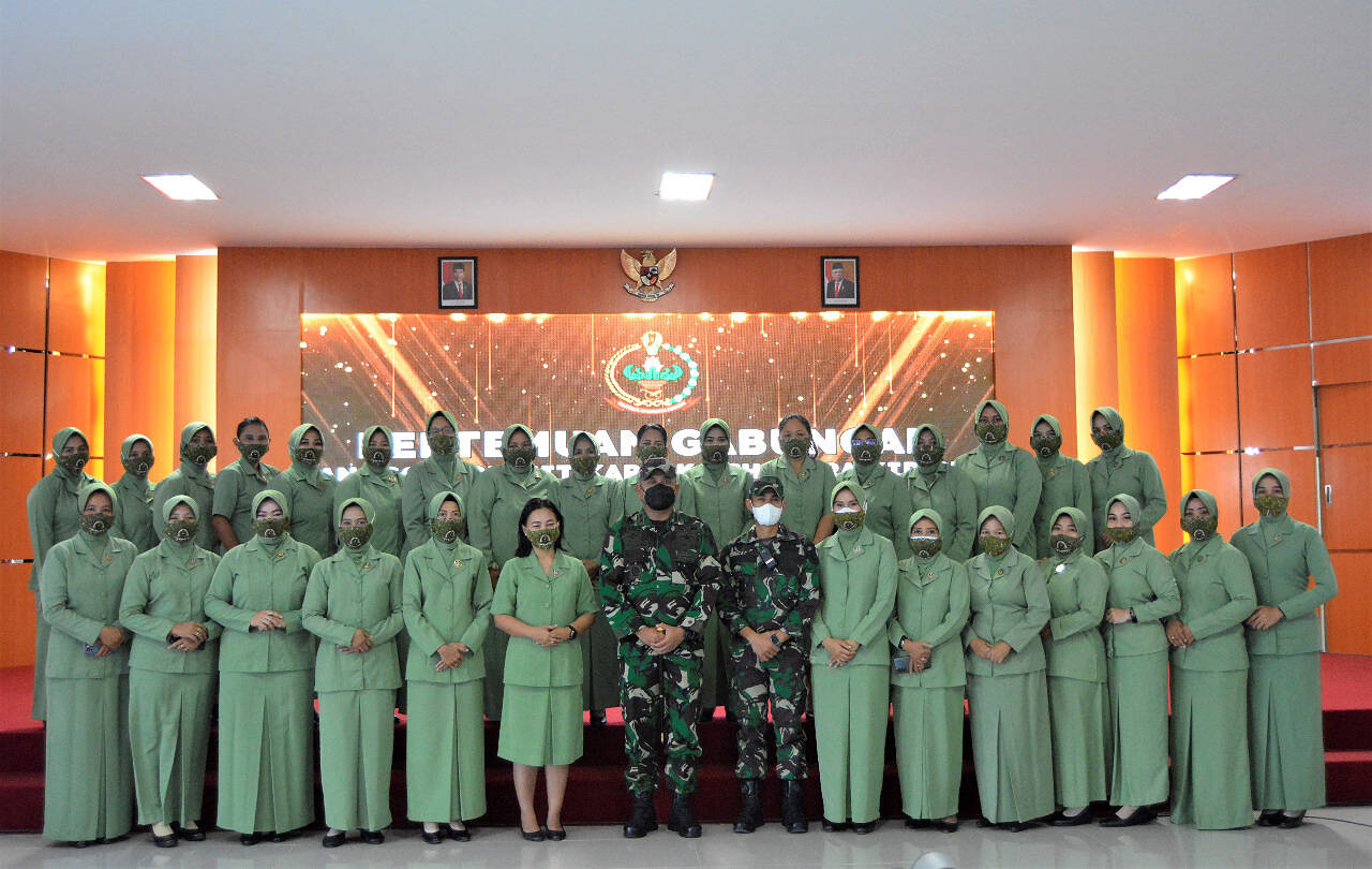 “Melaui media forum pertemuan gabungan Persit ini saya kembali mengingatkan jati diri Persit adalah sebagai pendamping prajurit TNI-AD, oleh sebab itu dalam mendampingi suami dengan segala dinamika yang ada kita harus dituntut untuk berfikir positif sehingga para suami dapat menjalankan tugas Negara dengan sebaik-baiknya”, ucap Dandim.