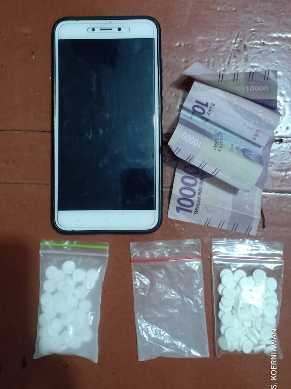 Selain 1 plastik klip berisi 39 butir pil logo Y, 1 plastik klip berisi 68 butir pil logo Y dan uang tunai sebesar 20 ribu rupiah, dari penangkapan itu aparat Polsek berhasil mengamankan 1 unit handphone yang digunakan oleh pelaku untuk bertransaksi dengan pembelinya.