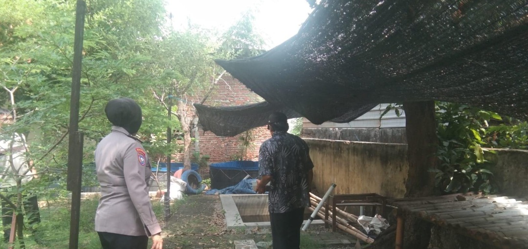 Dukung Ketahanan Pangan, Kanit Binmas Polsek Waru Tinjau Budidaya Lele di Lahan Fasum Desa Wedoro
