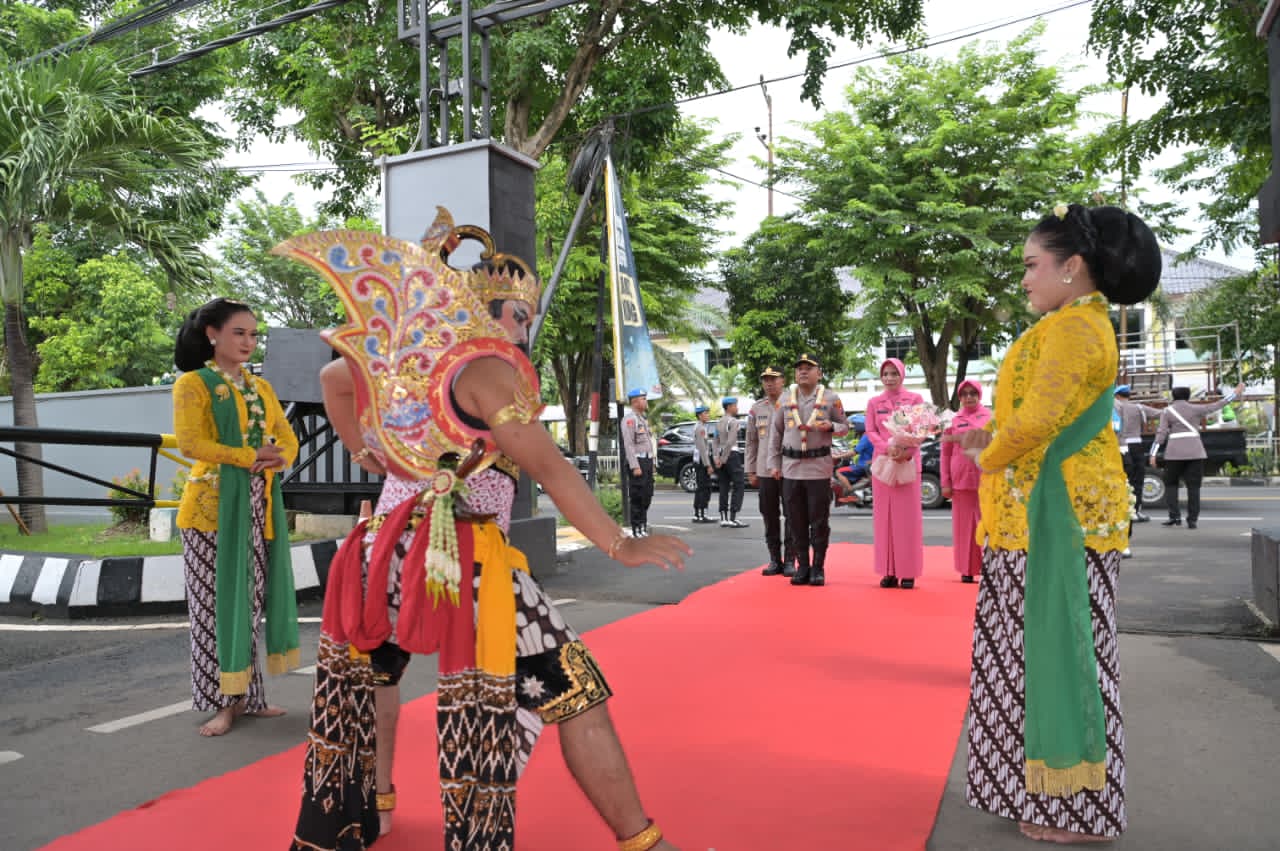 Kedatangan Kapolres Tuban ke-40 beserta Ibu itu disambut dengan tradisi gerbang pora, Rabu (14/01/2026)