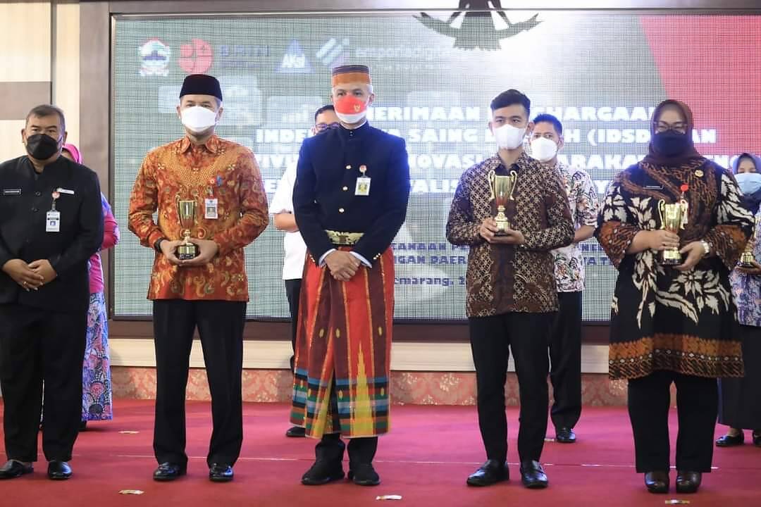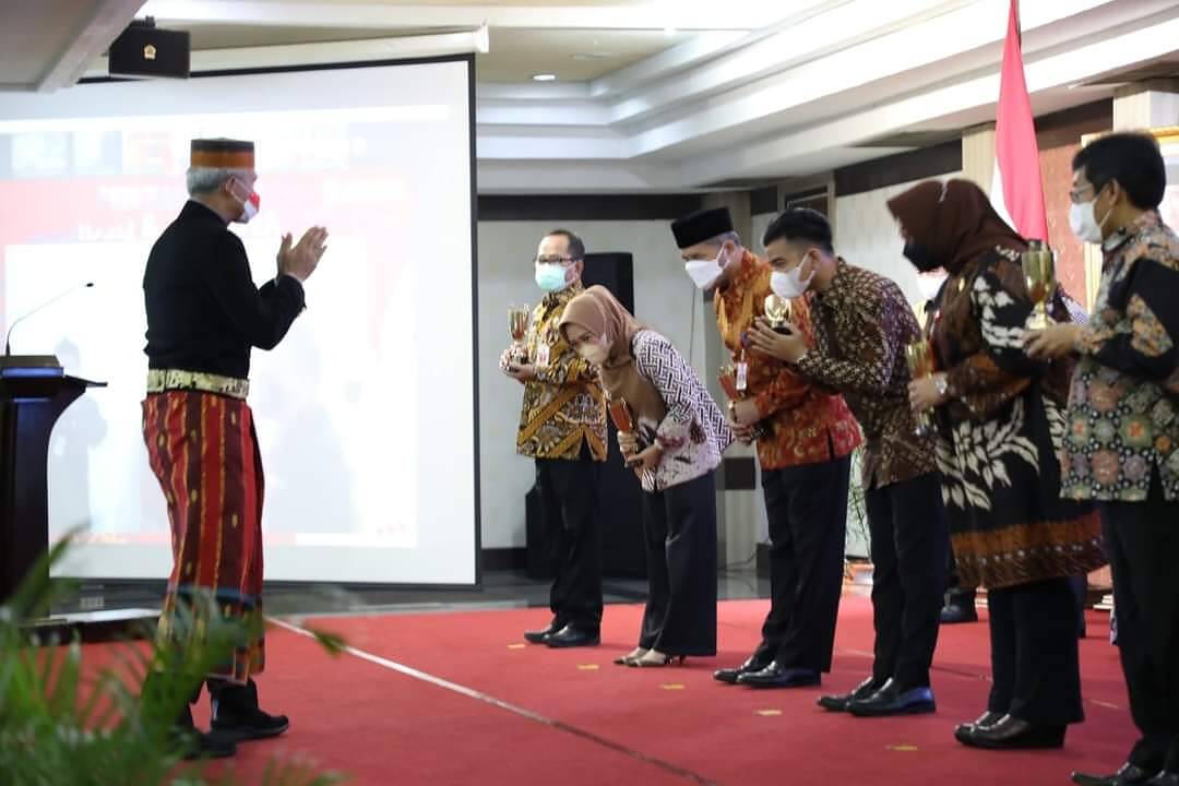 SEMARANG, kabar1news.com – Gubernur Jawa Tengah Ganjar Pranowo memberikan penghargaan kepada 14 kabupaten/kota pemenang Indeks Daya Saing Daerah (IDSD) dan 3 pemenang Kreatifitas dan Inovasi Masyarakat (Krenova) 2021. Kreasi dan Inovasi tersebut nantinya akan terus dikembangkan menjadi produk yang dapat dikomersilkan.