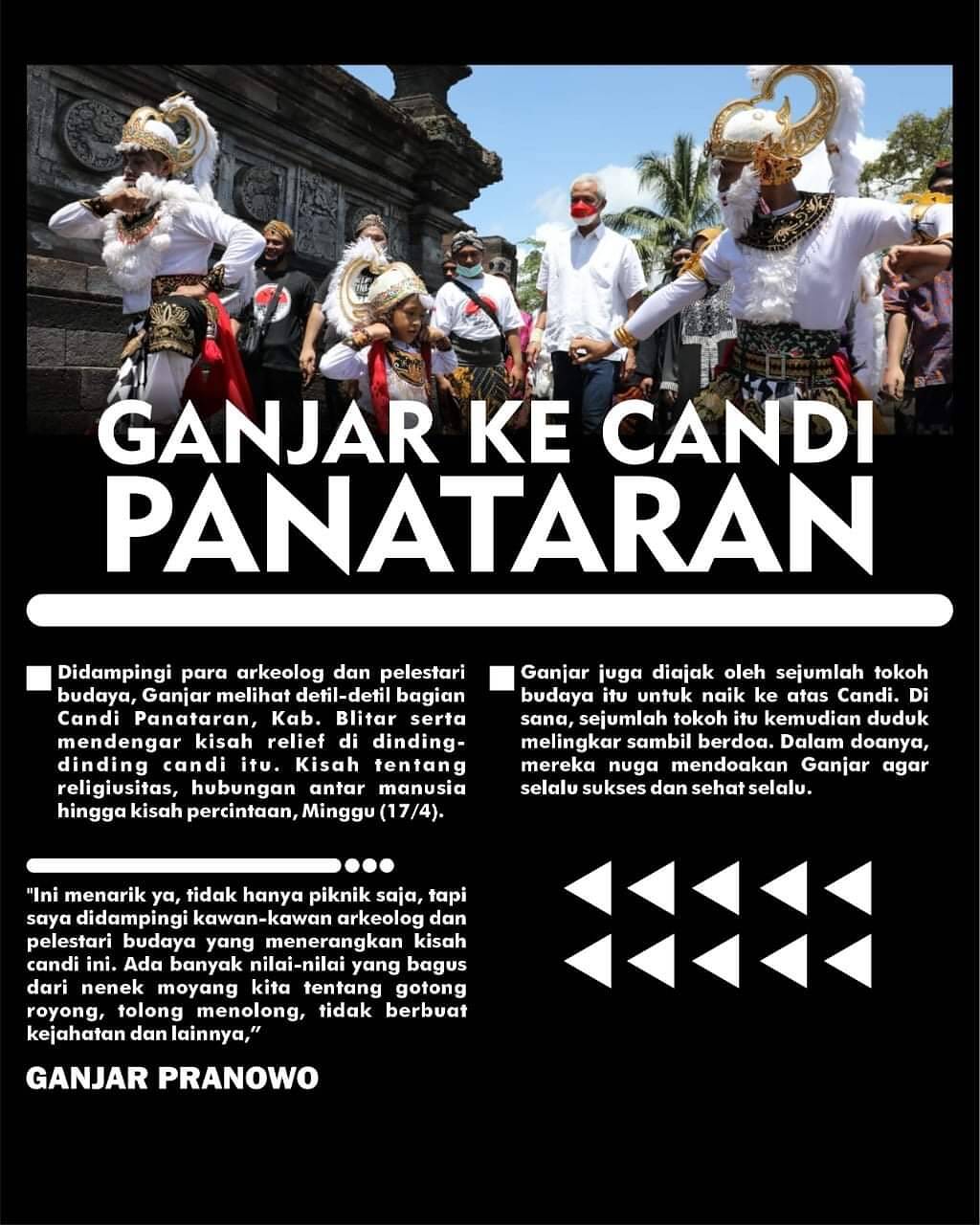 Tidak hanya Jagad yang membuat Ganjar begitu bersemangat. Saat berkeliling di Candi Penataran itu, Ganjar melihat-lihat peninggalan zaman kerajaan Kediri, Singosari dan Majapahit yang memesona.
