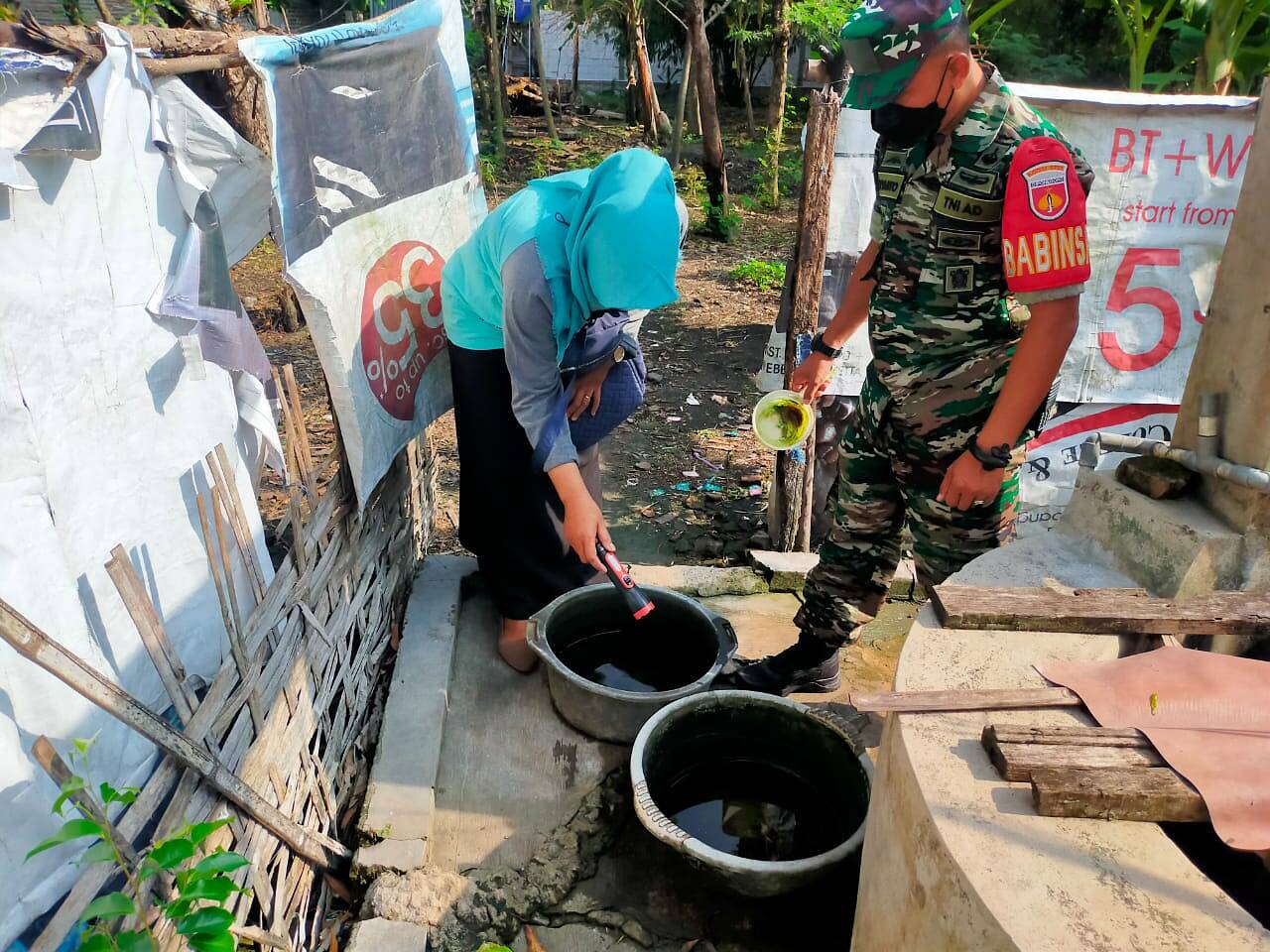 “Tujuan dilaksanakannya kegiatan ini adalah untuk mengurangi atau menurunkan populasi nyamuk guna mencegah penyakit yang disebabkan oleh nyamuk serta melatih warga untuk membiasakan hidup bersih dan sehat terutama dalam menjaga kebersihan rumah dan lingkungan,” ungkap Serka Suryanto