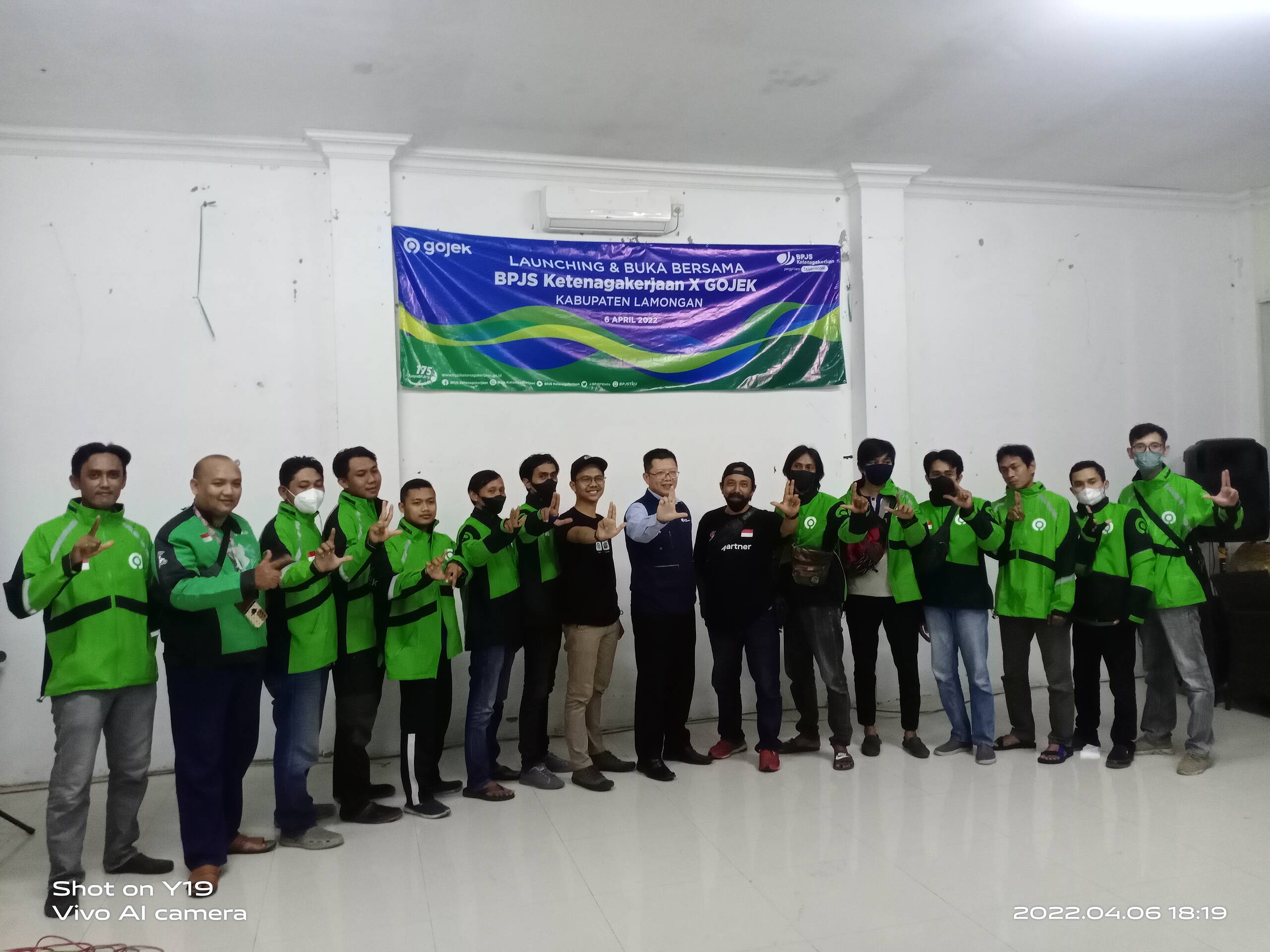 Lamongan,Kabar1news.com – BPJS Ketenagakerjaan Kantor Cabang Lamongan sosialisasi kepada para driver Gojek Lamongan untuk memperluas kepesertaan dari sektor informal. BPJS Ketenagakerjaan mensosialisasikan manfaat program BPJAMSOSTEK kepada driver Gojek lamongan bertempat di rumah makan Apung lamongan sekaligus disambung dengan kegiatan buka puasa bersama, Rabu sore (6/04/2022).