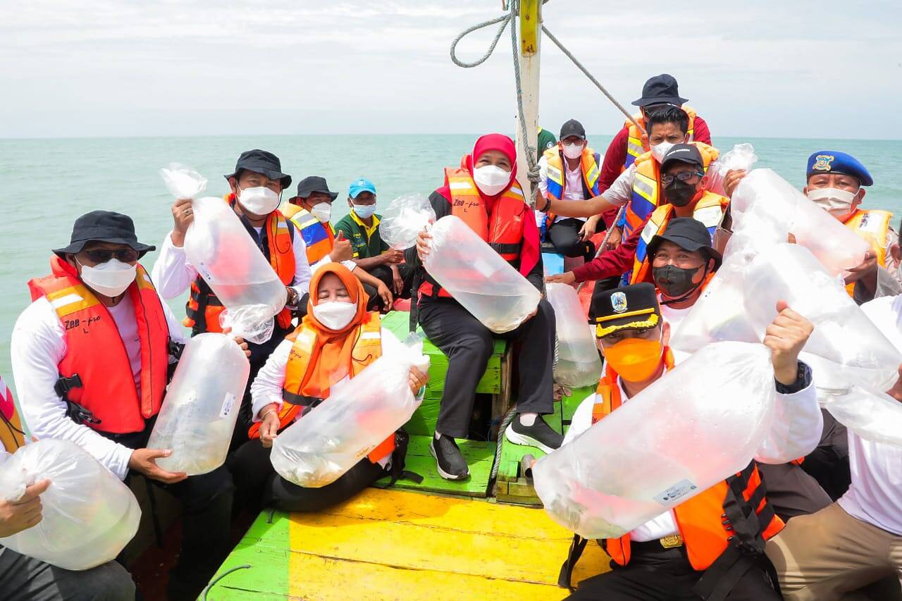 Sementara itu, Kadis Perikanan dan Kelautan Jatim, Dyah Wahyu Ernawati mengungkapkan selain penebaran benih ikan kakap dan kerapu yang berjumlah 2021 ekor, penanaman mangrove dan Beach Clean Up bersama masyarakat sekitar sebagai aksi nyata upaya menjaga kebersihan pantai, belajar ekosistem laut juga turut digelorakan untuk memberi edukasi kepada masyarakat pesisir terutama kaum milenial.