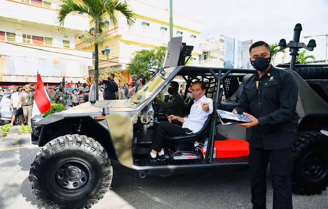 “Kita tahu bahwa Presiden ingin selalu memperkenalkan produk lokal, mulai dari minuman, makanan, sepatu, jaket, hingga motor custom. Kali ini Presiden memperkenalkan kendaraan serang taktis hasil rakitan dalam negeri, kecuali mesin ya,” ucap Komandan Pasukan Pengamanan Presiden (Paspampres) Mayjen TNI Tri Budi Utomo.