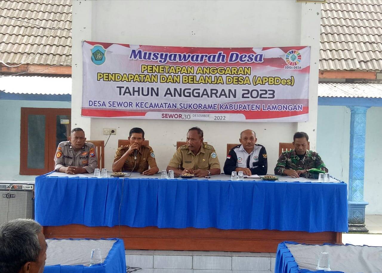 Lamongan, Kabar1News.com – Babinsa Koramil 0812/24 Sukorame Sertu Manan bersama Bhabinkamtibmas Polsek Sukorame hadiri Musyawarah Penetapan Anggaran Pendapatan dan Belanja Desa (APBDes) tahun 2023 yang bertempat di Balai Desa Sewor Kecamatan Sukorame, Selasa(03/01/2023).