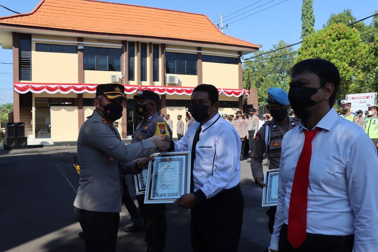 ”Pada kesempatan ini Polres Bojonegoro berikan penghargaan kepada personel terbaik yang berprestasi dalam pelaksanaan tugas, sebanyak 16 (Enam Belas) Personel. Ke 16 personel berhasil mengungkap kasus tindak pidana dan tertib, tepat waktu dalam pelaporan,” ungkap Kapolres dalam sambutannya.