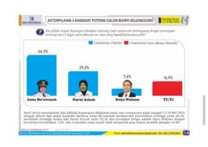 Selain itu, hasil survei tingkat keterpilihan dari tiga kandidat calon Bupati Bojonegoro, Anna Mu’awanah masih menempati posisi teratas diantara pesaingnya Nurul Azizah dan Setyo Wahono.