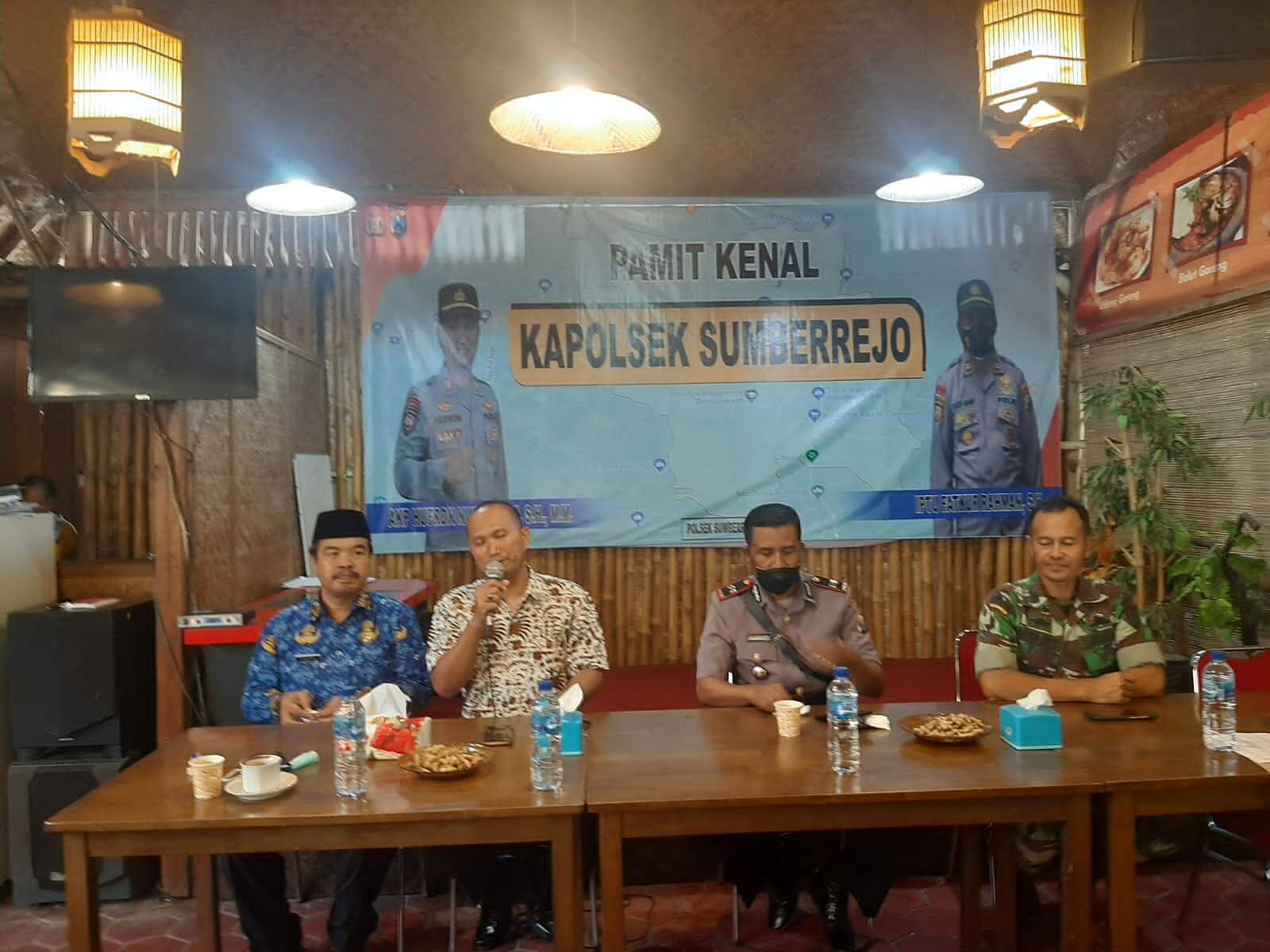 Sementara itu, Iptu Fatkur Rohman, SH selaku pejabat baru sebagai Kapolsek Sumberrejo, dihadapan seluruh undangan yang hadir meminta Forpimda serta tiga pilar plus sebagai mitra kamtibmas untuk bersama – sama bekerja sama menjaga kamtibmas di wilayah Sumberrejo tetap kondusif agar tercipta rasa aman bagi masyarakat Sumberrejo. Selain meminta untuk tetap bekerjasama, serta apa yang telah terjalin dengan Kapolsek yang lama yang baik tetap dilanjutkan sebagai bentuk upaya dalam bekerja bersama.