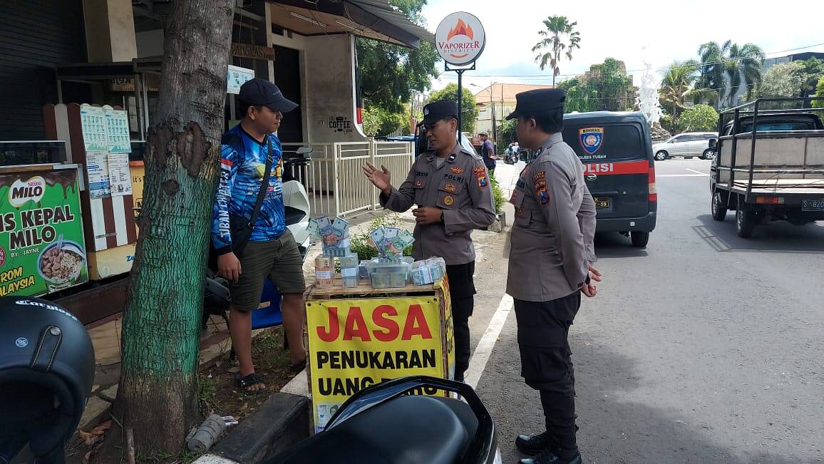 Untuk mengantisipasi gangguan Kamtibmas baik peredaran uang palsu pada penyedia jasa maupun aksi penjambretan, Polisi pun meningkatkan kegiatan patroli serta memberikan himbauan kepada penyedia jasa penukaran, Selasa (11/04/2023).