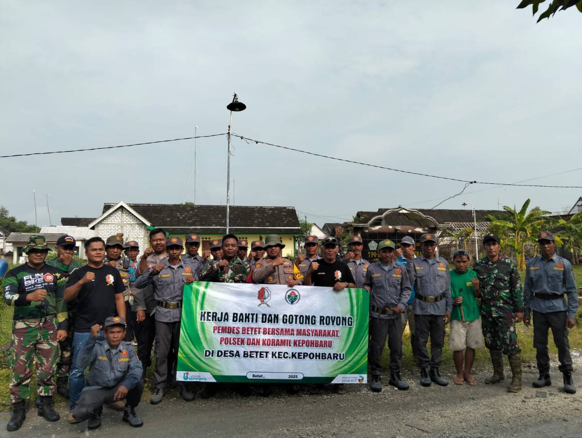Bojonegoro, Kabar1News.com – Menyambut Ramadan 1446 H/2025, Pemerintah Desa (Pemdes) Betet bersama Polsek dan Koramil Kepohbaru menggelar Kerja Bakti bersih-bersih sarana umum di wilayah desa Betet kecamatan Kepohbaru kabupaten Bojonegoro Provinsi Jawa Timur, Jumat (28/2/2025) pagi.