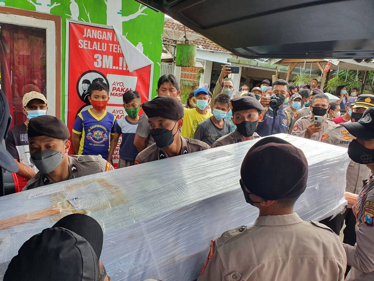 Kedatangan jenazah, mendapat pengawalan dari aparat Kepolisian dari Polda Jatim, Polresta Sidoarjo dan Polres Lumajang. Jenazah diantar menggunakan ambulan milik Polda Jatim menuju rumah duka.