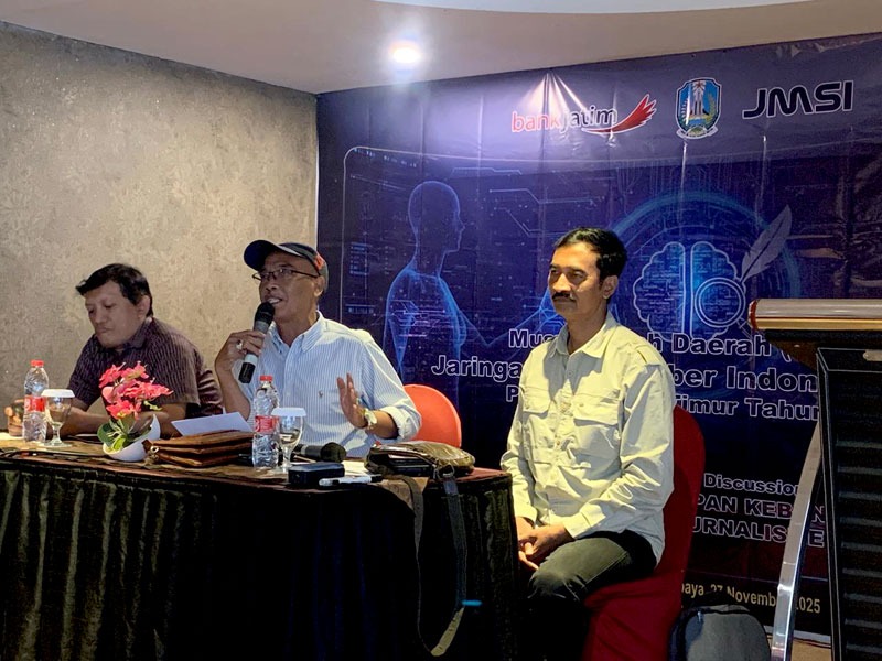 Jaringan Media Siber Indonesia (JMSI) Provinsi Jatim menggelar Focus Group Discussion (FGD) tentang “AI dan Masa Depan Kebenaran Tantangan Baru Jurnalisme Modern” dilanjutkan Musyawarah Daerah (Musda) di CrownPrince Hotel Surabaya, Kamis (27/11/2025).