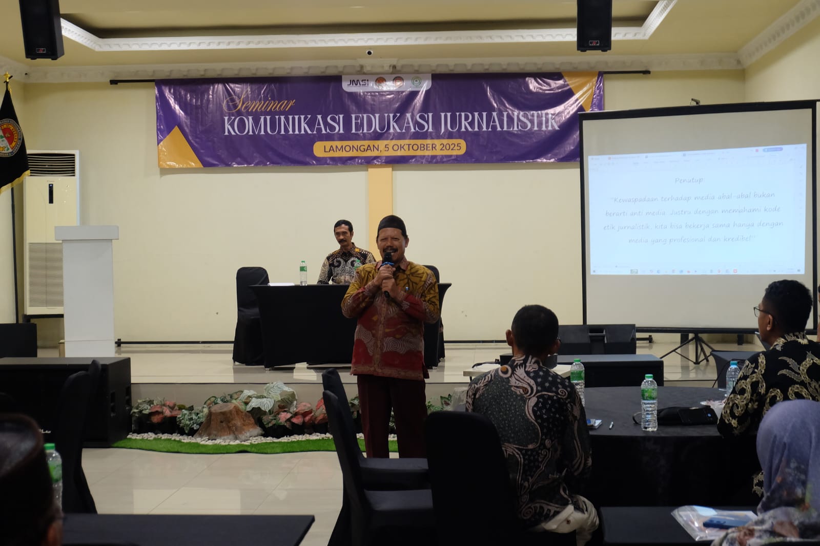 Seminar dan dialog dipandu oleh narasumber, Syaiful Anam dan Jay Wijayanto (Ketua dan Wakil Ketua JMSI Provinsi Jatim).