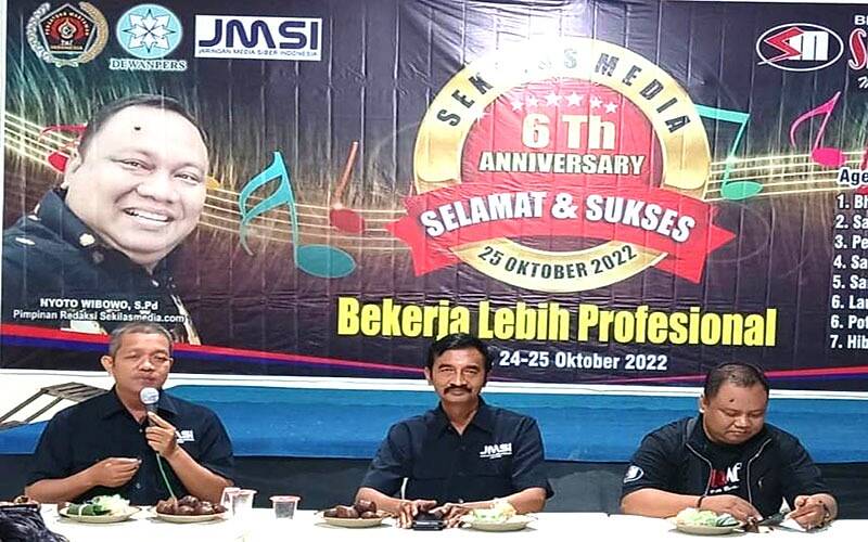 Surabaya,Kabar1news.com – Jaringan Media Siber Indonesia (JMSI) Provinsi Jatim melakukan sosialisasi kompetensi media dan wartawan, di Villa Asia Pacet Jl. Raya Air Panas, Kabupaten Mojokerto, Senin (24/10/2022). Kegiatan ini bersamaan rangkaian HUT ke-6 sekilasmedia.com, media online terverifikasi administrasi dan faktual Dewan Pers, anggota JMSI Jatim.