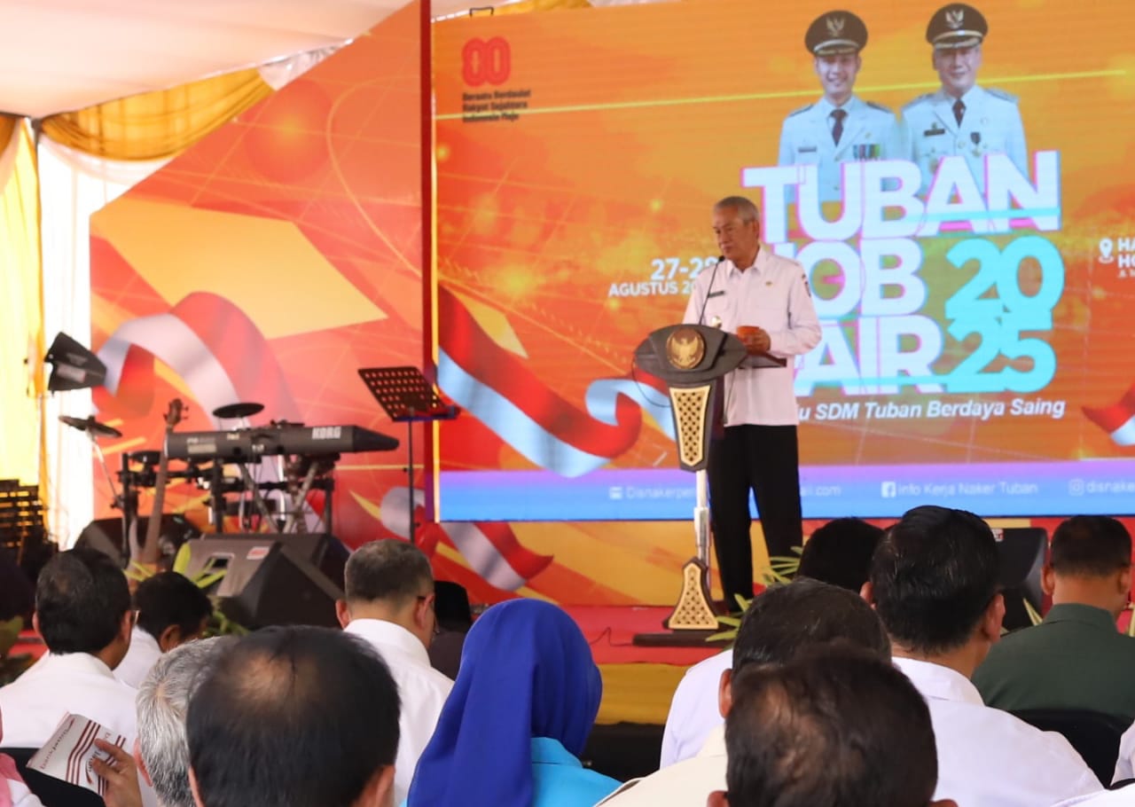 Tuban, Kabar1News.com – Pameran Bursa Kerja (Job Fair) Kabupaten Tuban 2025 resmi dibuka pada Rabu (27/8), di Hotel Mustika Tuban. Acara ini mengusung tema “Menuju SDM Tuban Berdaya Saing” dan menjadi salah satu langkah strategis Pemkab Tuban dalam mengurangi angka pengangguran serta meningkatkan kualitas sumber daya manusia.