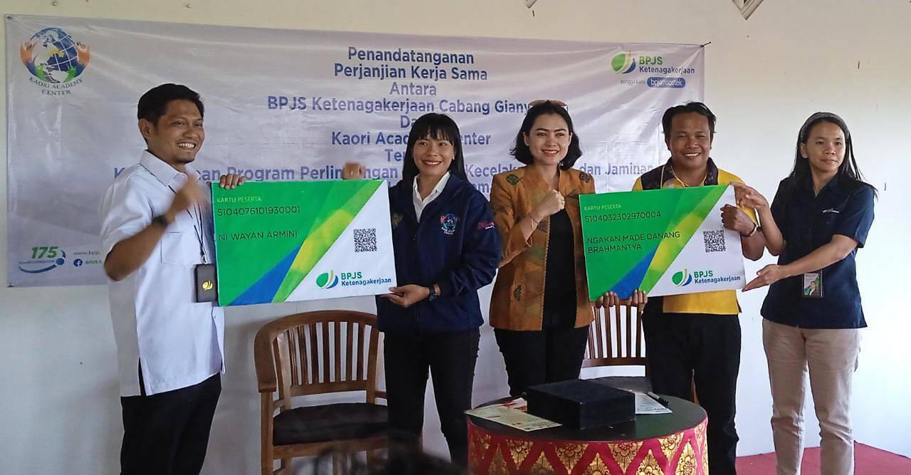 “Hari ini Kaori Academy center melakukan penandatangan MOU dengan BPJS tenaga kerja Kabupaten Gianyar, di mana kami melihat kebutuhan perlindungan kepada peserta pelatihan selama magang di Kaori Academy Center selama 3 bulan mereka akan dilindungi pada saat ikut proses pelatihan,” ujarnya.