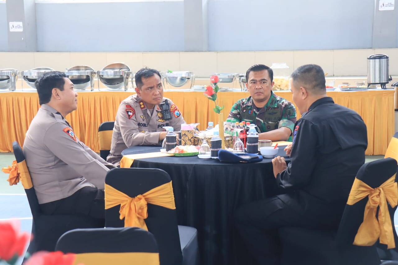 Polres Bojonegoro menggelar Halal Bihalal bersama jajaran Kodim 0813/Bojonegoro, Kompi 3 Yon C Pelopor Brimob Polda Jatim dan Bhayangkari Cabang Bojonegoro di Gedung Sport Center Polres Bojonegoro, Selasa(2/5/2023). Dok.ist_hms@2023.