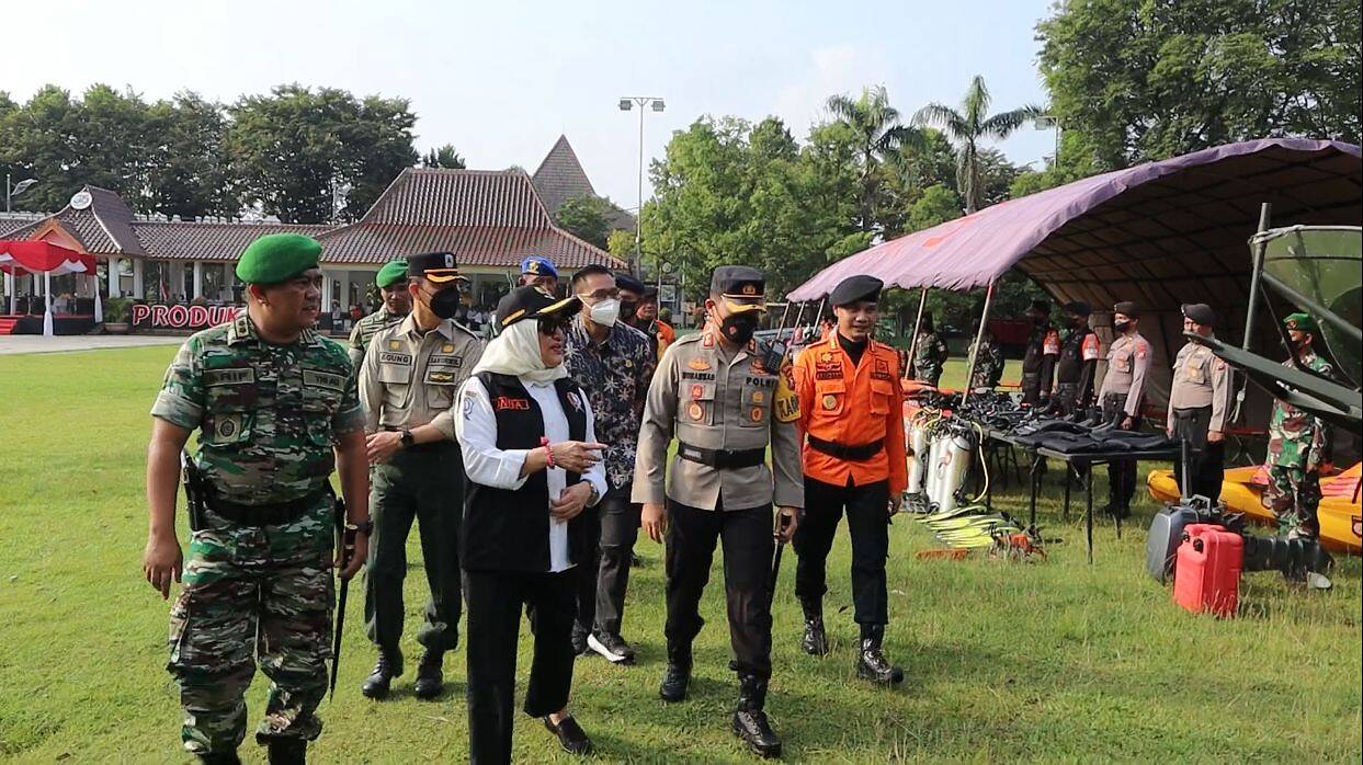 Apel Gelar Pasukan Kesiapsiagaan Penanggulangan Bencana Tahun 2022 selaku pimpinan apel Bupati Bojonegoro, Dr. Hj. Anna Mu’awanah.