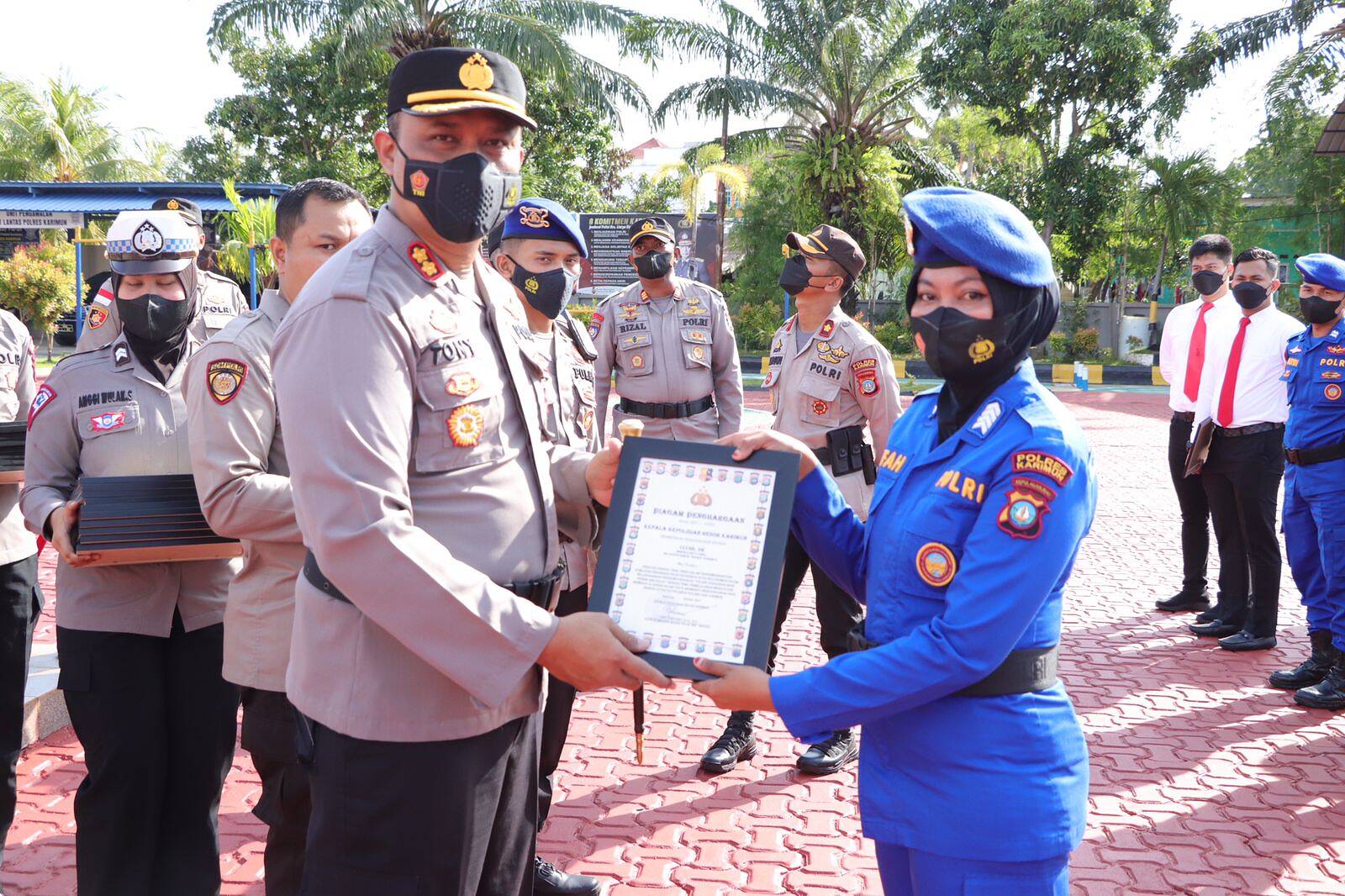 Dalam arahannya Kapolres Karimun menyampaikan bahwa pemberian penghargaan kepada personil yang berprestasi dibidang operasional / Pembinaan dan sosial budaya yang telah membantu pelaksanaan tugas dan mengharumkan nama Institusi Polri. Adapun anggota serta Satuan Fungsi yang menerima penghargaan tersebut antara lain Fungsi Bag Ops, Bag SDM, Sat Res Narkoba, Sat Reskrim, Sat Polair, Sat Binmas, Sat Lantas, Sihumas, Sikeu, serta Polsek Daratan dan Polsek yang dipulau Kabupaten Karimun.