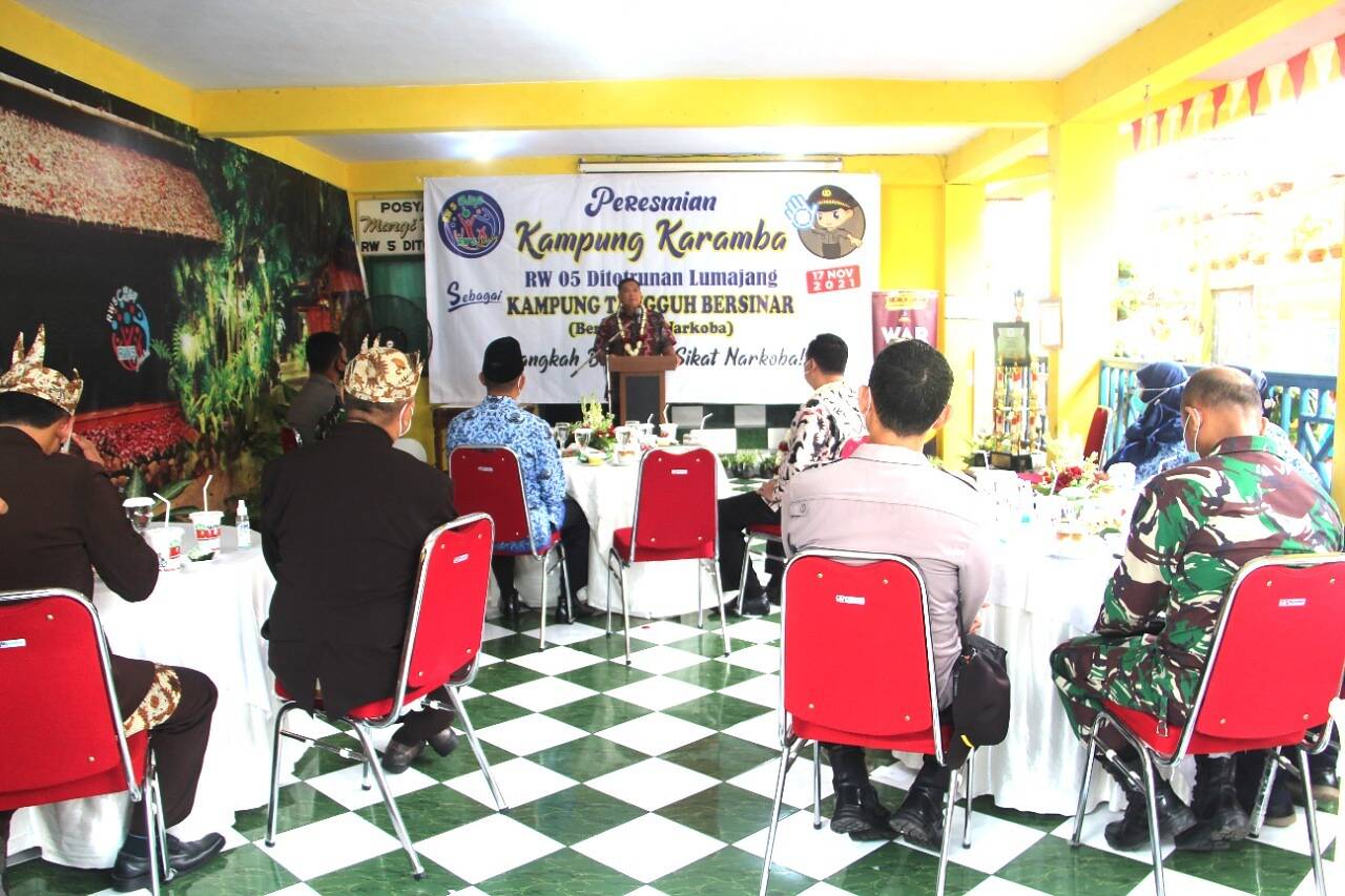 Lumajang, kabar1news.com – Kampung Karamba yang terletak di Kelurahan Ditotrunan, Kabupaten Lumajang, Jawa Timur diresmikan sebagai Kampung Tangguh Bersih dari Narkoba atau Bersinar.